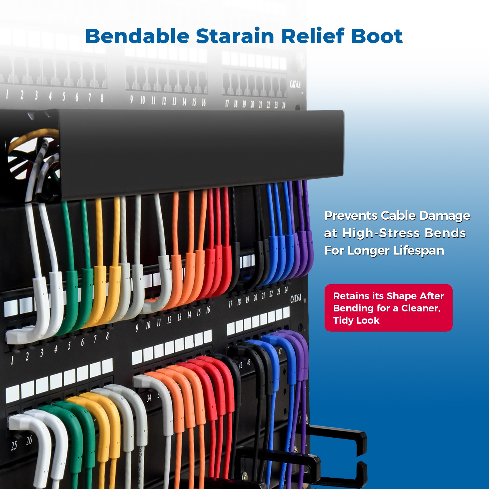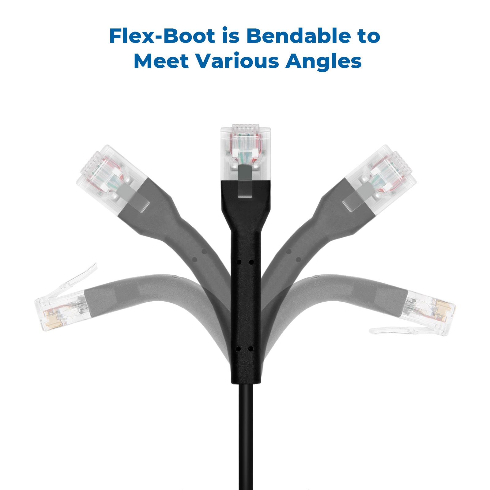 Bendable Flex-Boot Connector: Innovative boot design allows the RJ45 connector to bend in multiple angles.