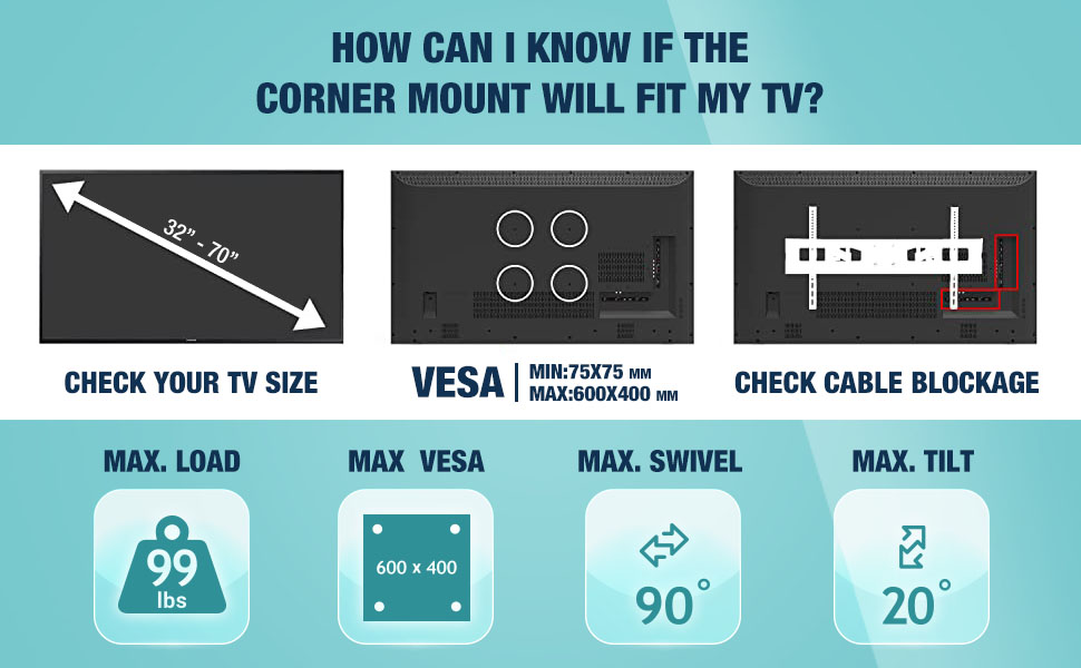 Transform unused corner space into the perfect viewing zone with this Corner TV Mount, engineered specifically to fit where standard wall mounts cant. Designed for 32"70" flatpanel LCD/LED TVs, this heavyduty mount delivers exceptional stability and fullmotion flexibility ideal for living rooms, bedrooms, offices, and tight layouts.