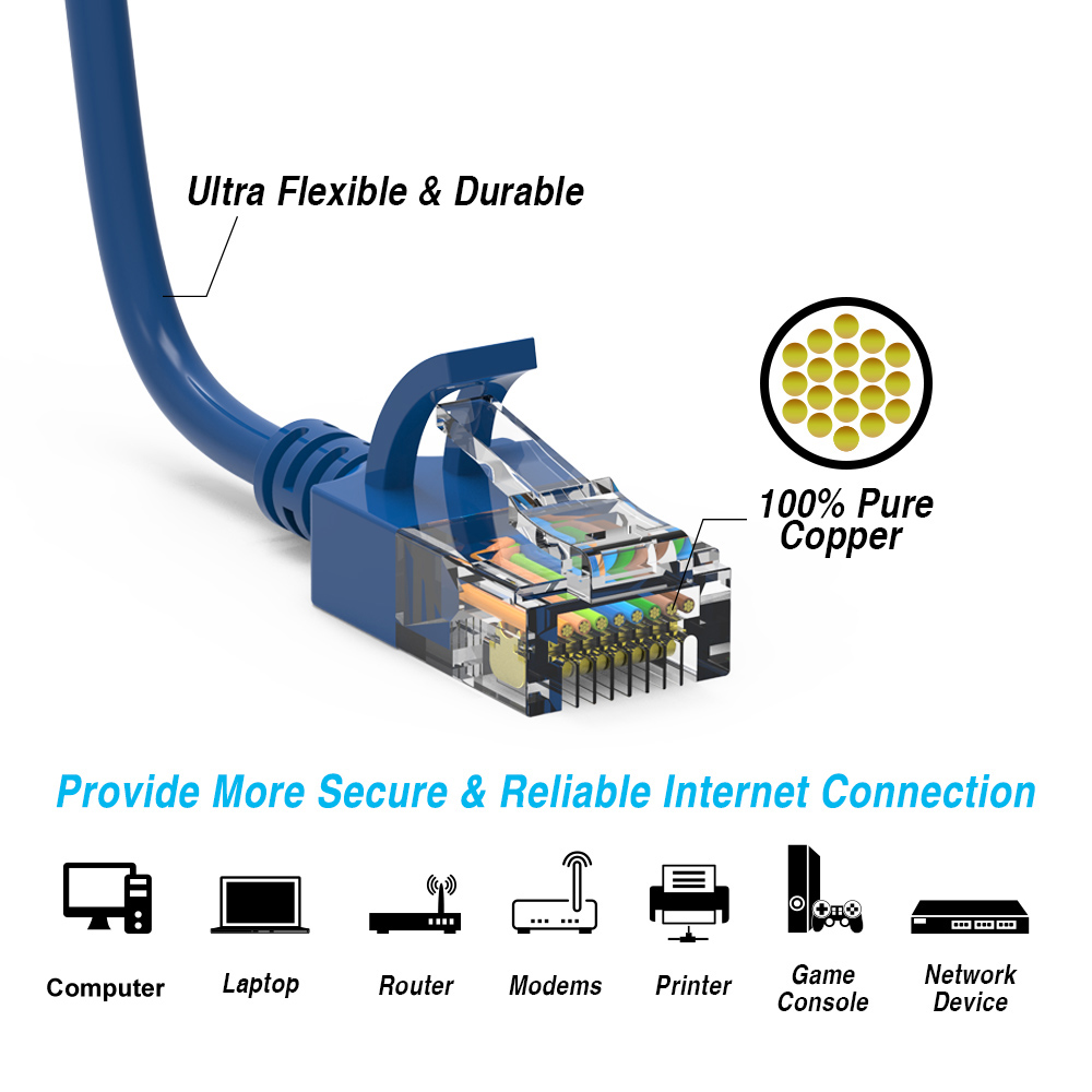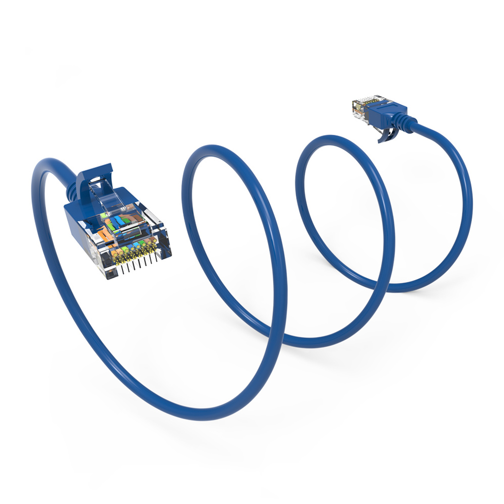 Patch Cables Cat.5E/6/6A/7/8 Cat.6A Slim Cables 28AWG 0.75Ft Cat6A UTP Slim Ethernet Network Booted Cable 28AWG Blue