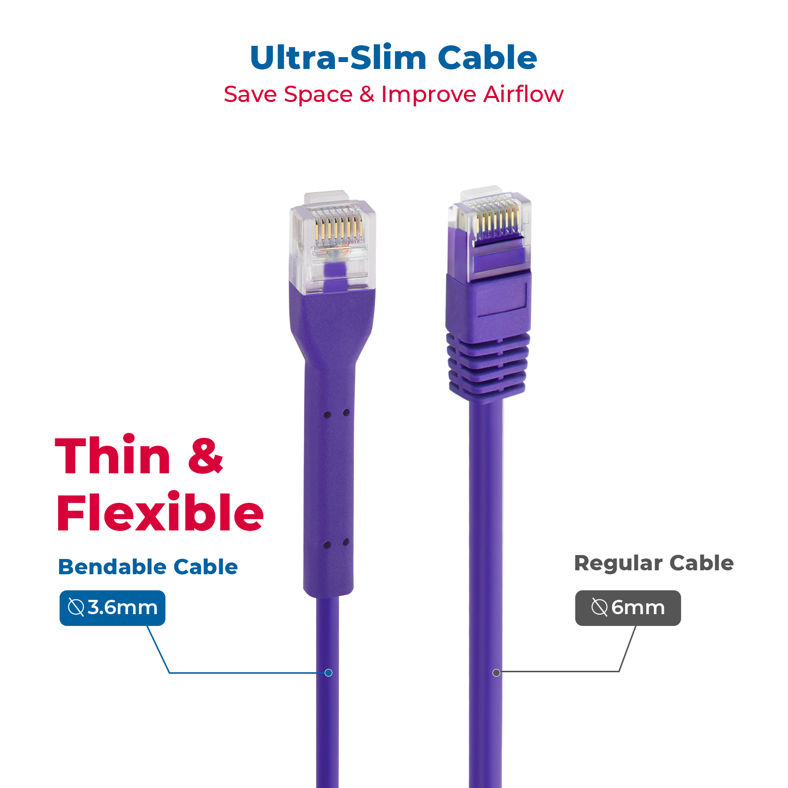 1.5Ft Cat6A UTP Bendable Slim Ethernet Network Cable 28AWG Purple SKU: 100553PU
