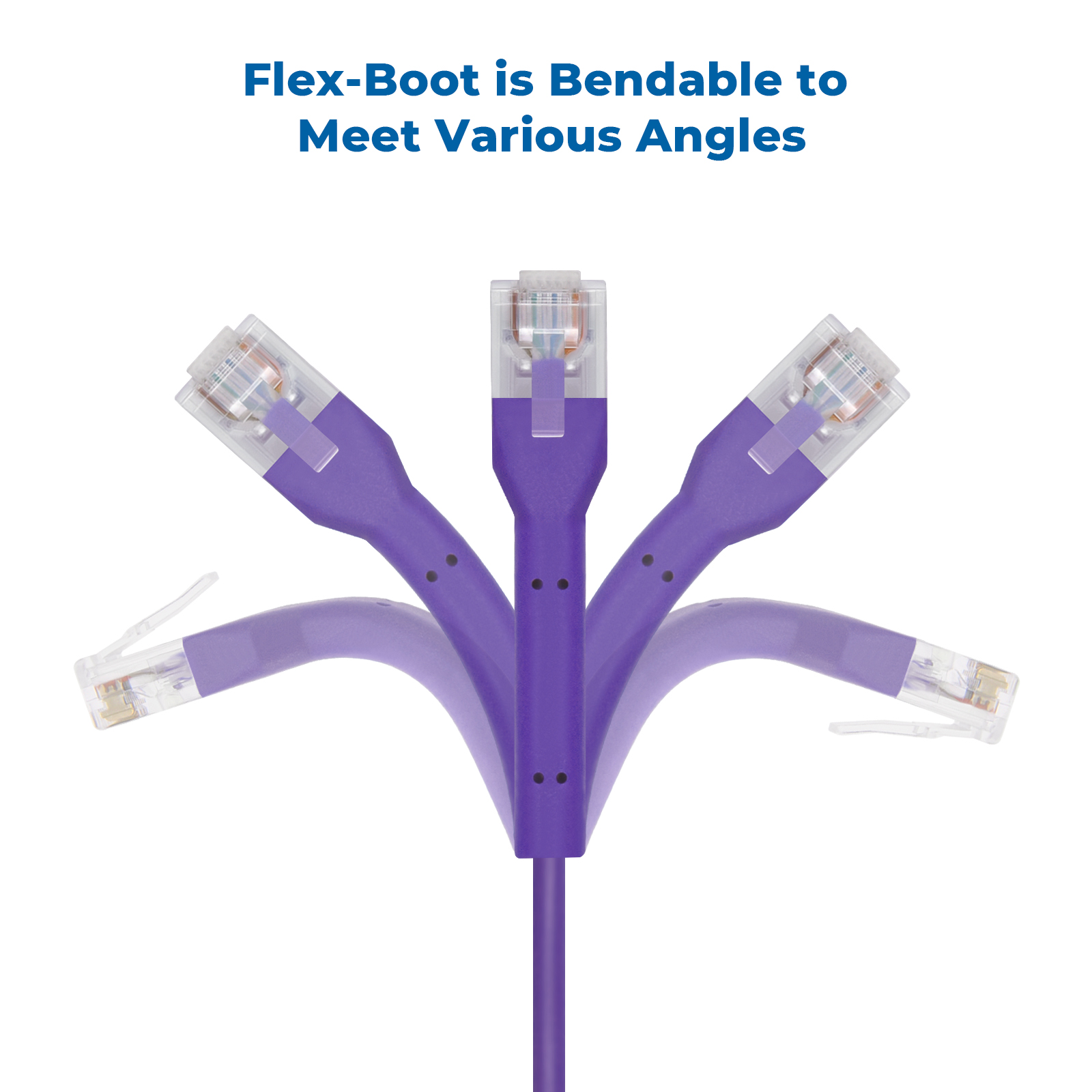 Bendable Flex-Boot Connector: Innovative boot design allows the RJ45 connector to bend in multiple angles.