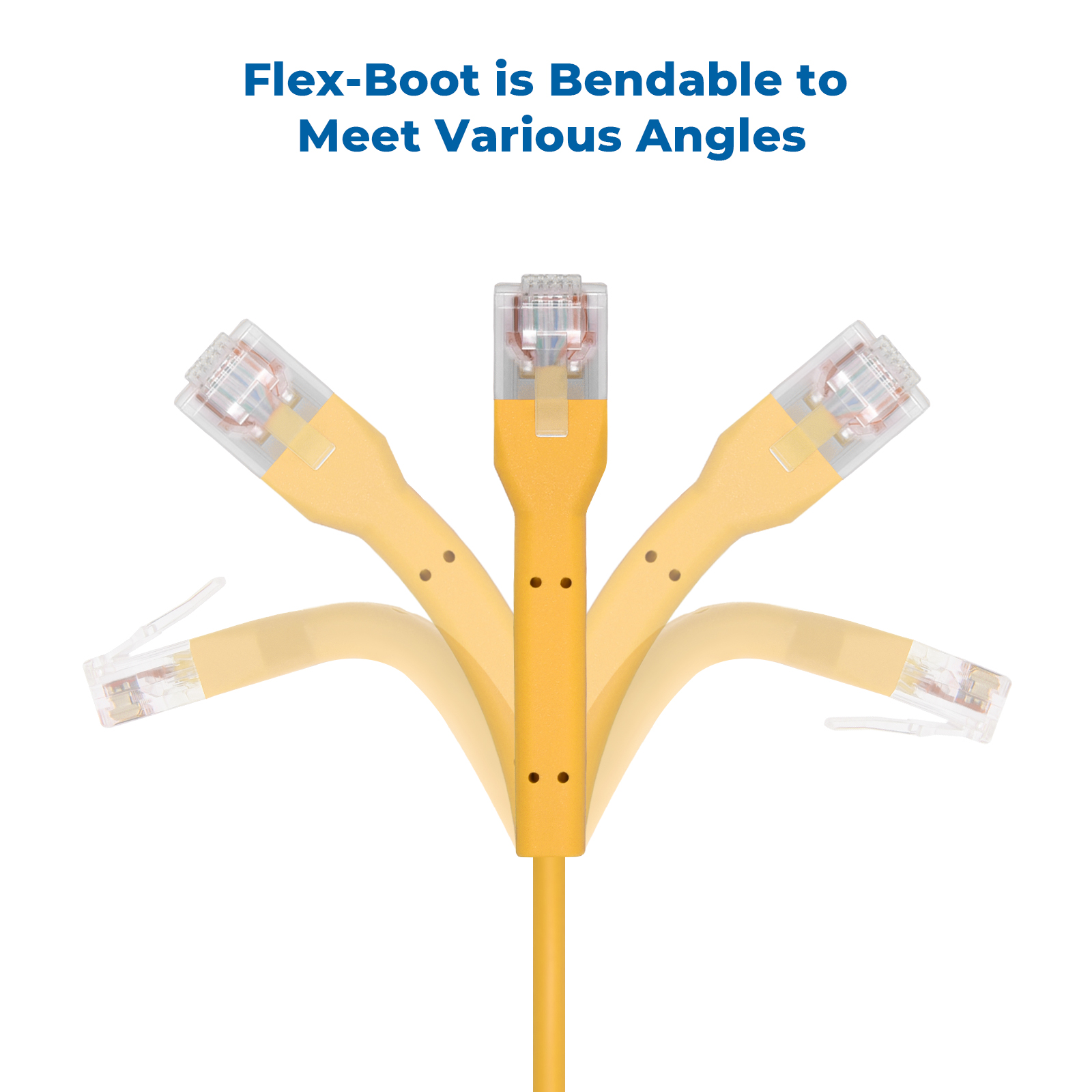Bendable Flex-Boot Connector: Innovative boot design allows the RJ45 connector to bend in multiple angles.