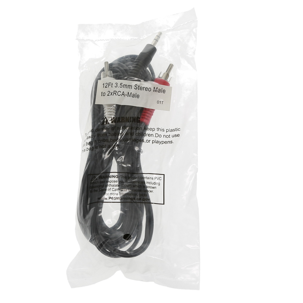 12Ft 3.5mm Stereo Plug to 2xRCA-M Cable