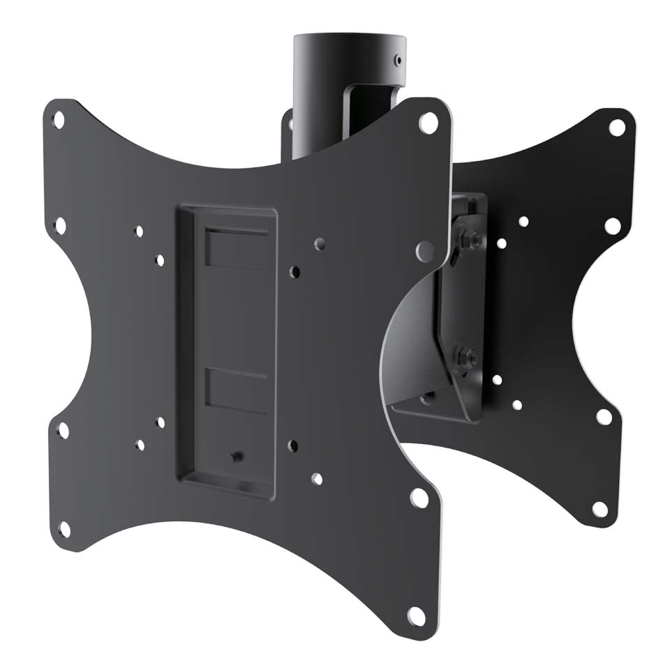 This ceiling brackett is designed to mount two LCD or LED TV back to back on 1-1/2" NPT (National Pipe Thread) standard pipe. Applicable screen size is 23" to 42", and it can be tilted down to 12 degrees.